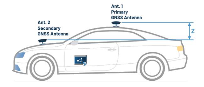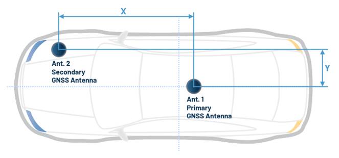 The ADMA, the GNSS antenna and external speed sensor can’t be mounted at the very same spot. The devices are placed at different positions in or outside the vehicle.