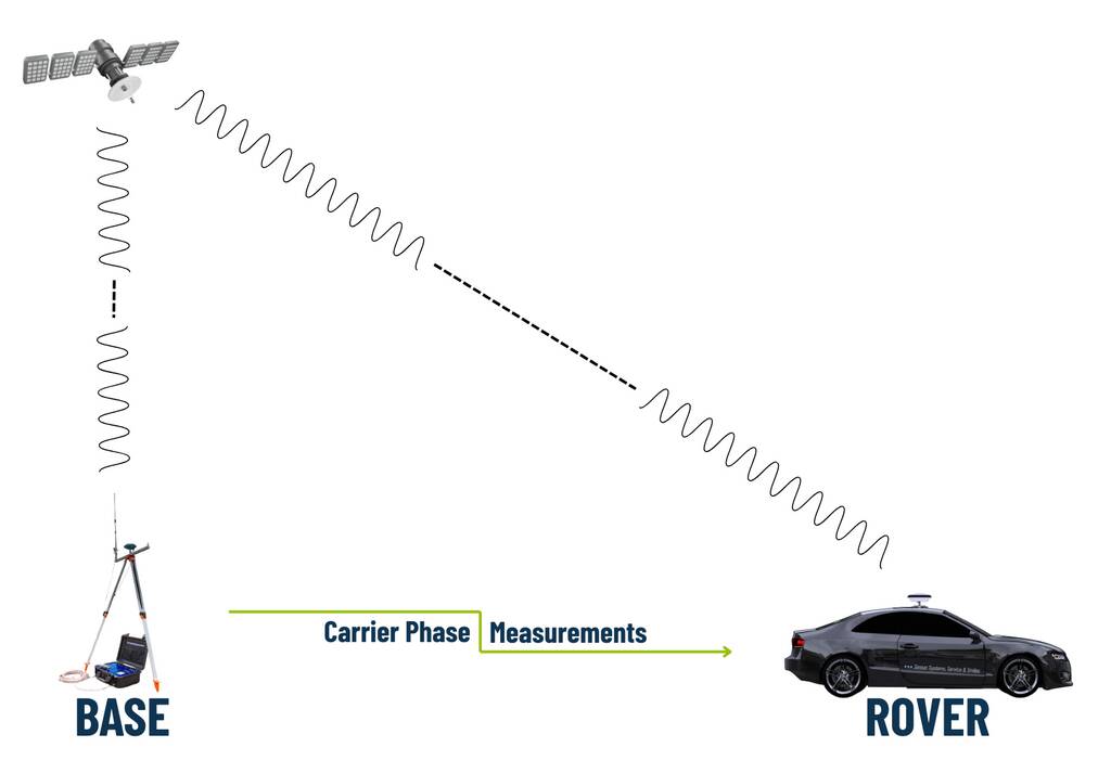 Normally, GNSS receivers calculate their position based on how long it takes for the satellite signal to reach them – this gives a distance with meter-level accuracy. RTK goes further: it also measures the carrier phase of the satellite signal, which has a much shorter wavelength and is therefore much more precise.