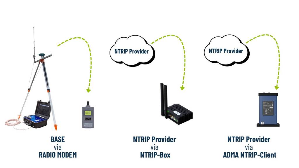 Regardless of the correction data source used, the standard format for correction data is RTCM messages. The current version in use is RTCM v3.2, which provides all essential information required for correcting up to four different GNSS signals: GPS, GLONASS, GALILEO, and BEIDOU. The ADMA system utilizes the MSM5 (Multiple Signal Message type 5) standard, which ensures compatibility and comprehensive support for multi-constellation GNSS corrections.
