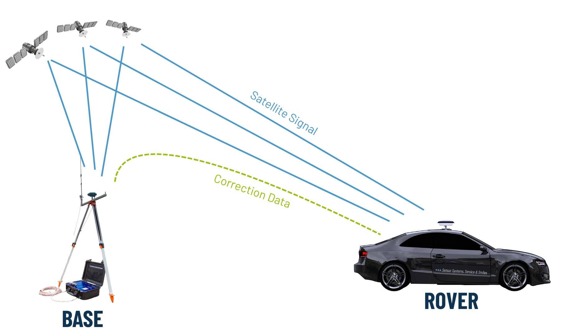 - A rover unit (e.g., a vehicle-mounted GNSS receiver) that receives both satellite signals and correction data from the base.
