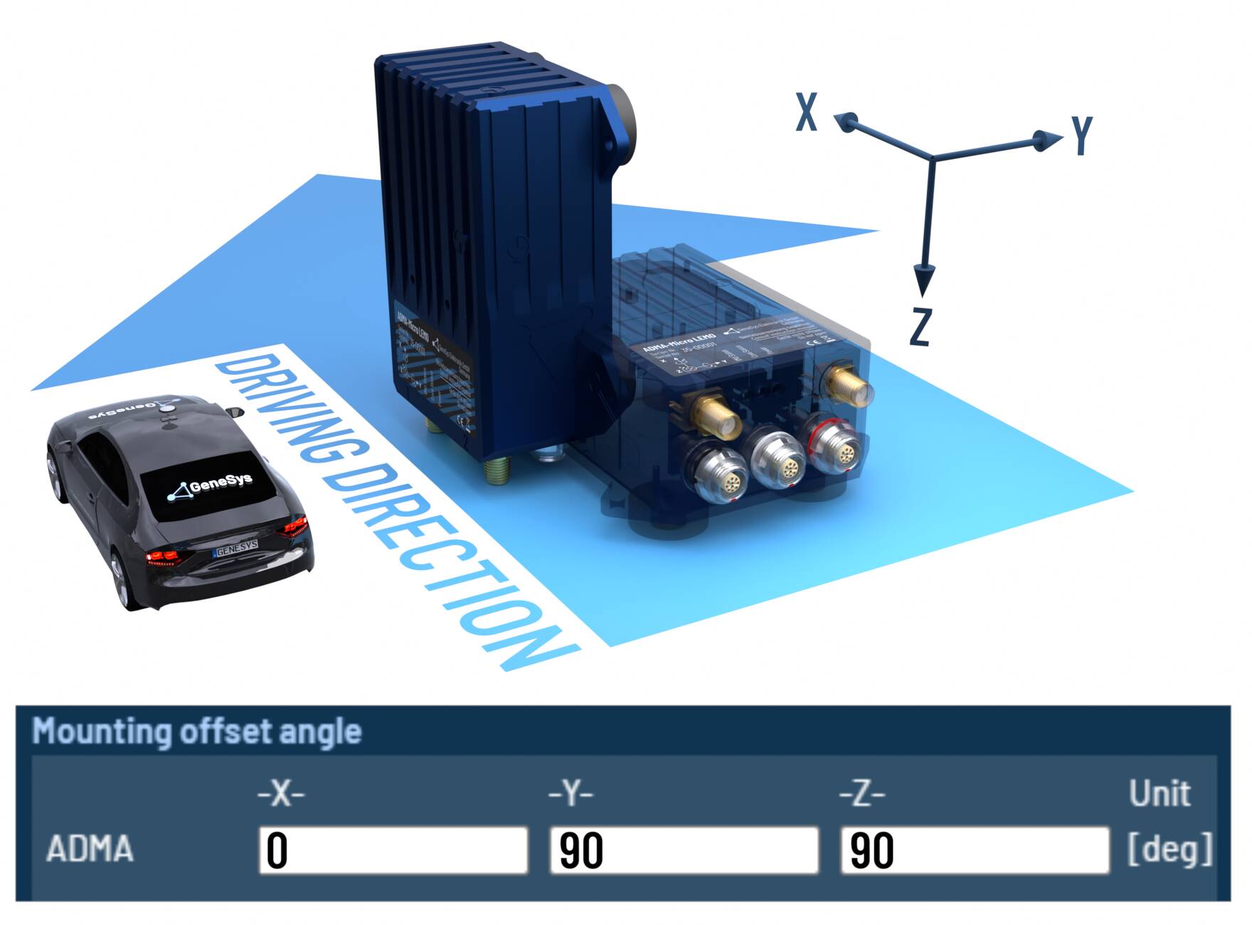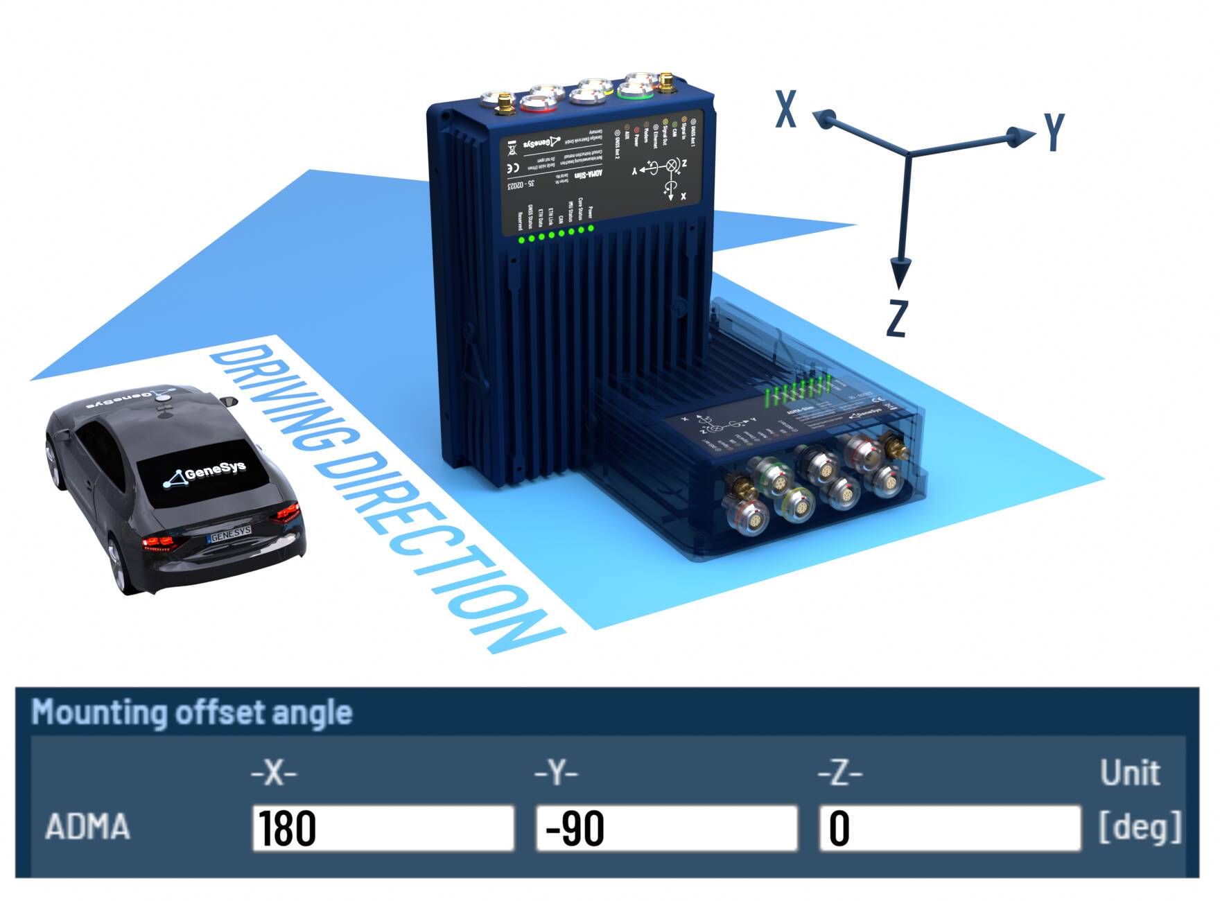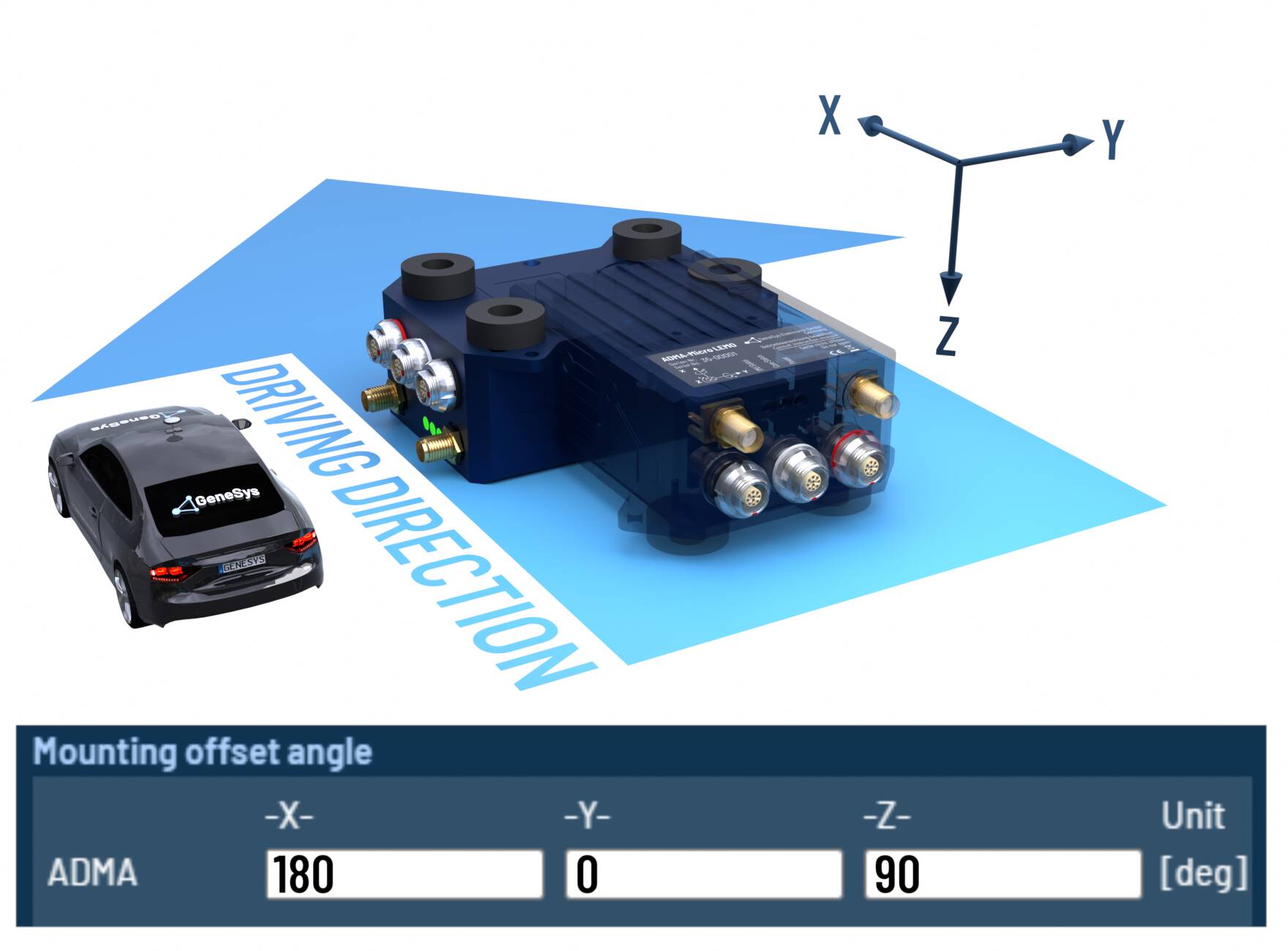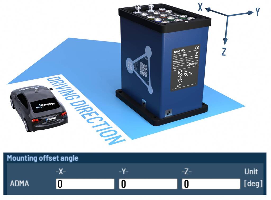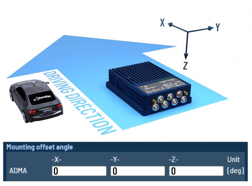 When the ADMA rotated orthogonally around multiple axes, please configure the offset angles according to the following tables.