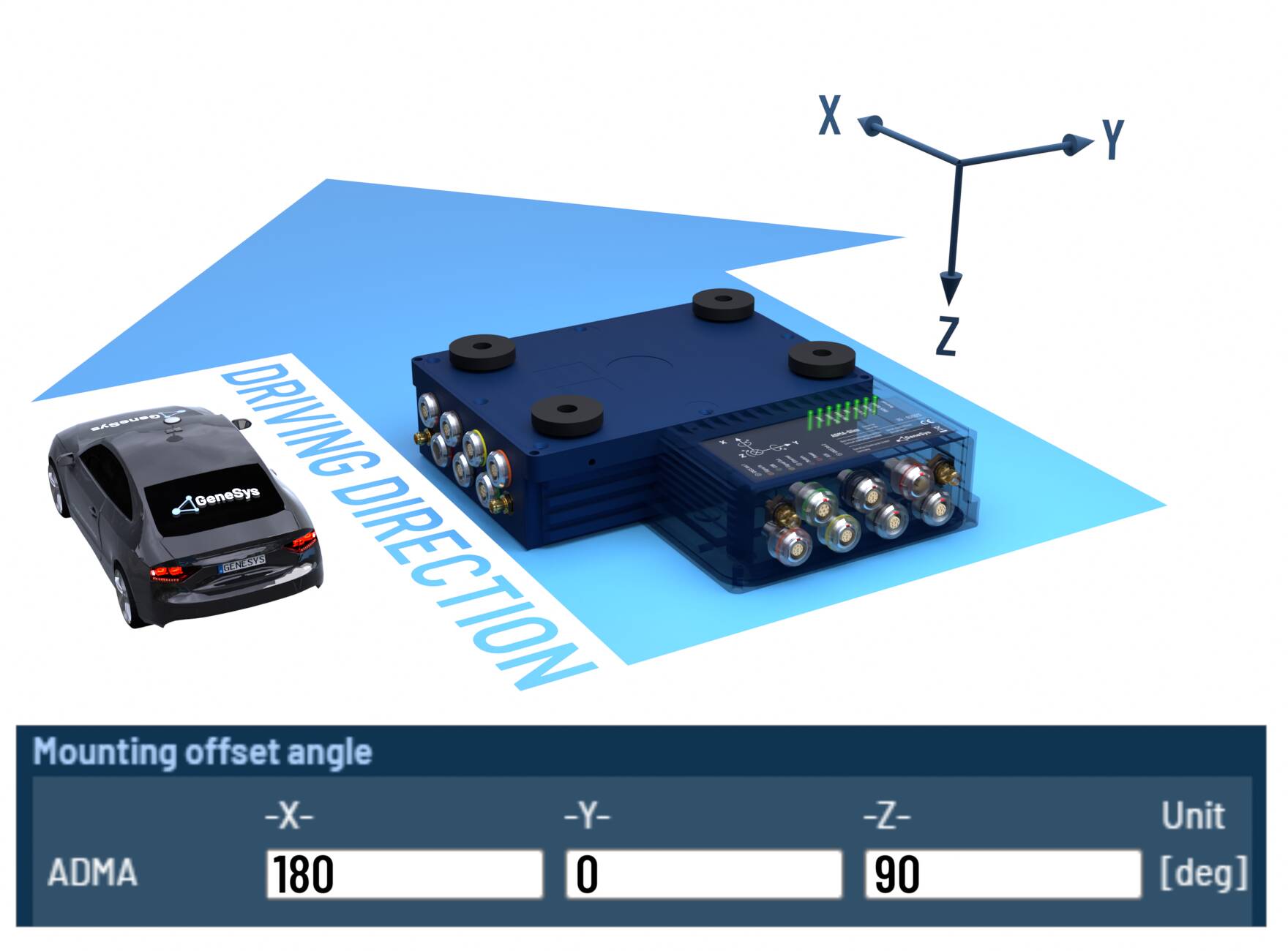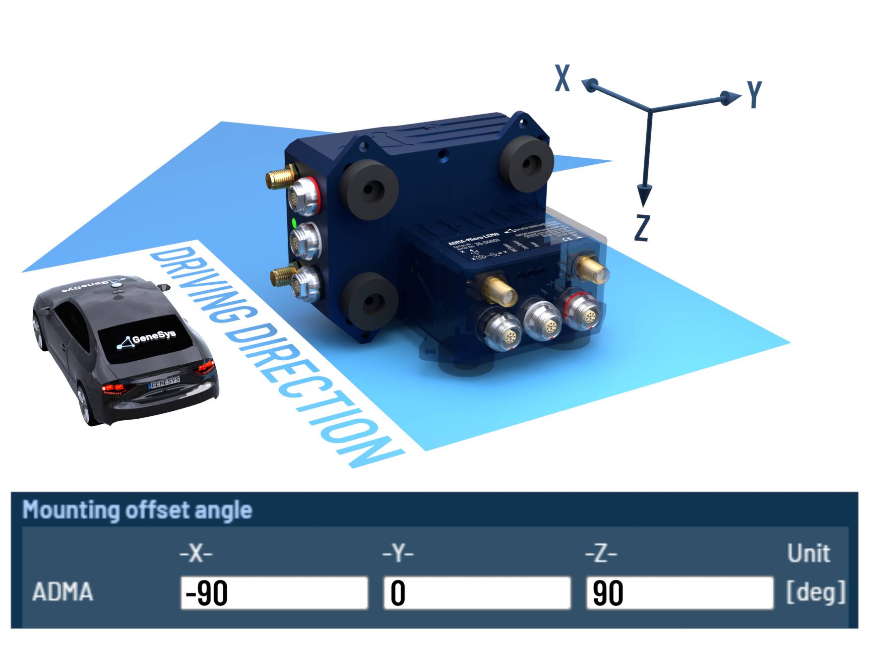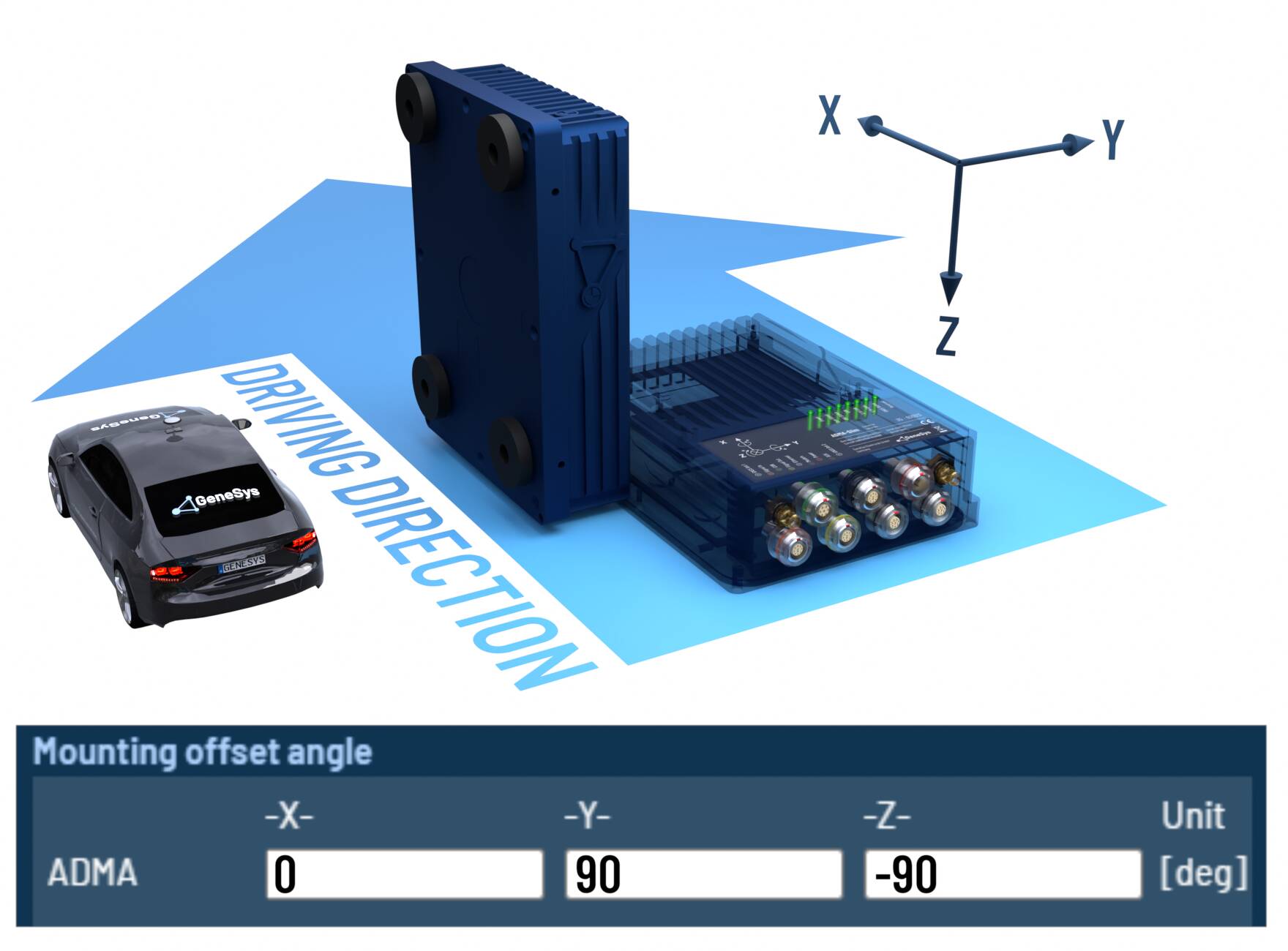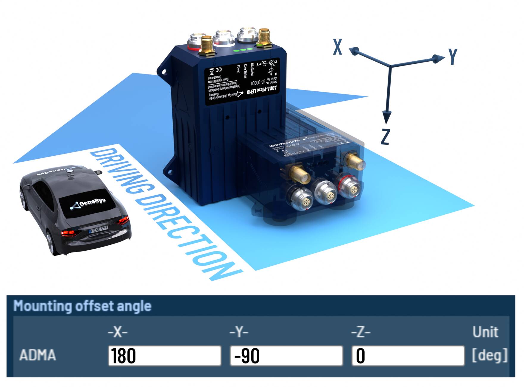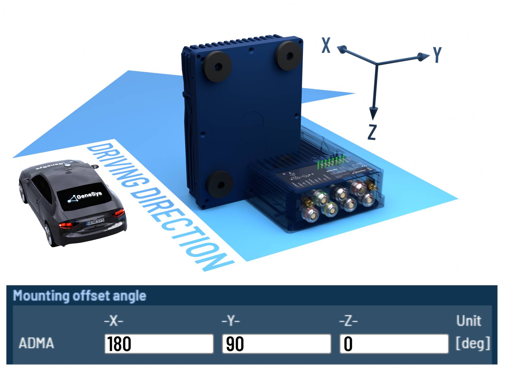When the ADMA rotated orthogonally around multiple axes, please configure the offset angles according to the following tables.