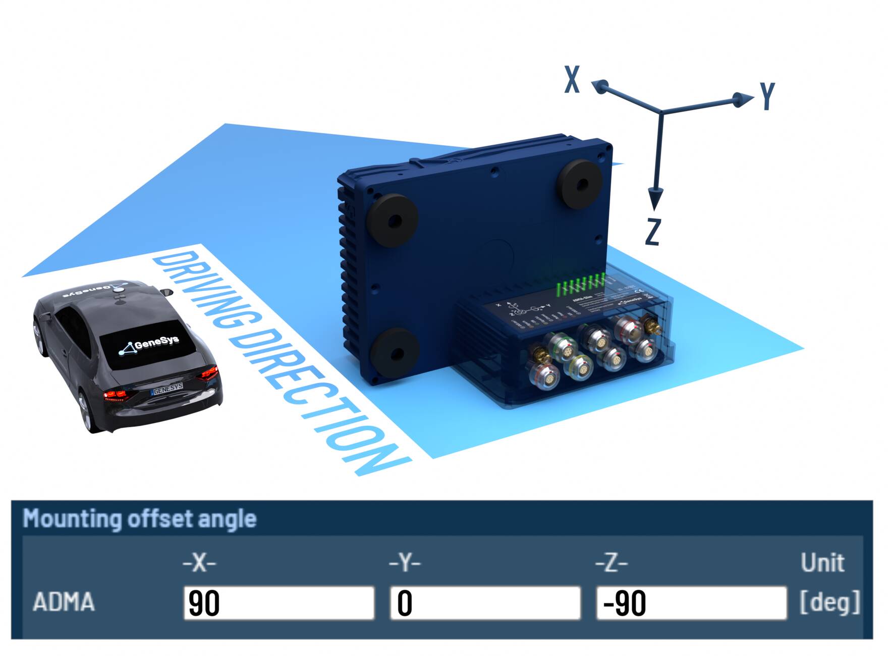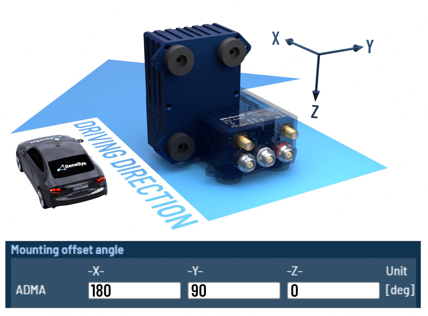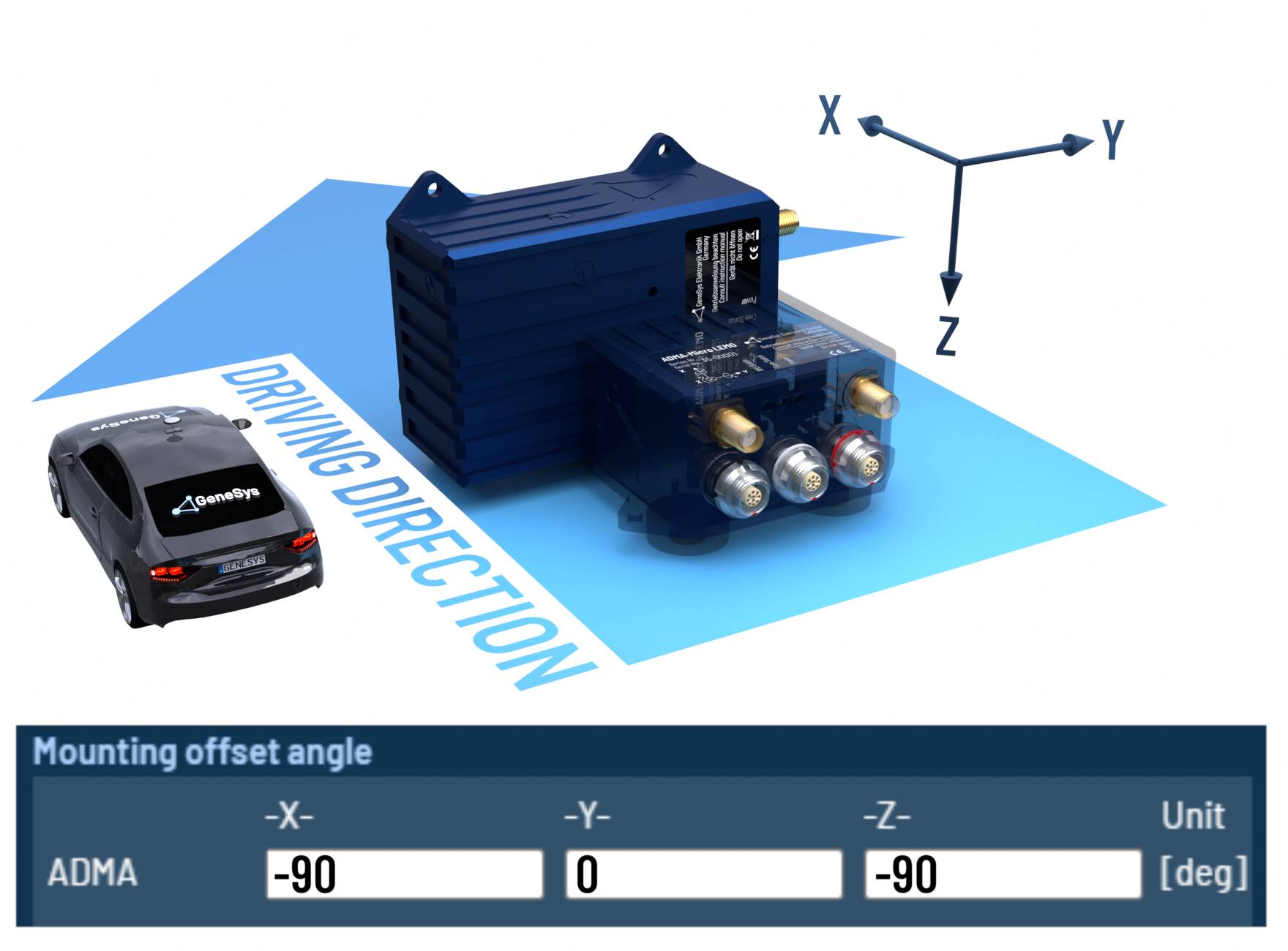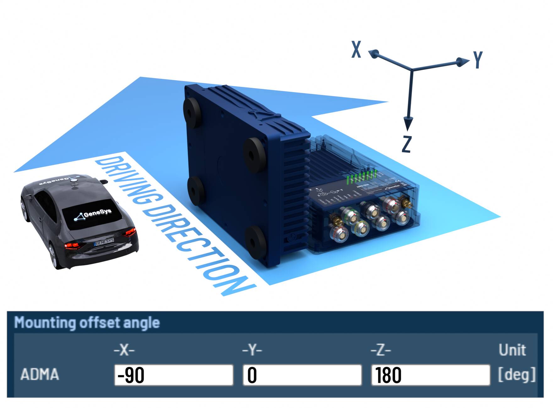 When the ADMA rotated orthogonally around multiple axes, please configure the offset angles according to the following tables.
