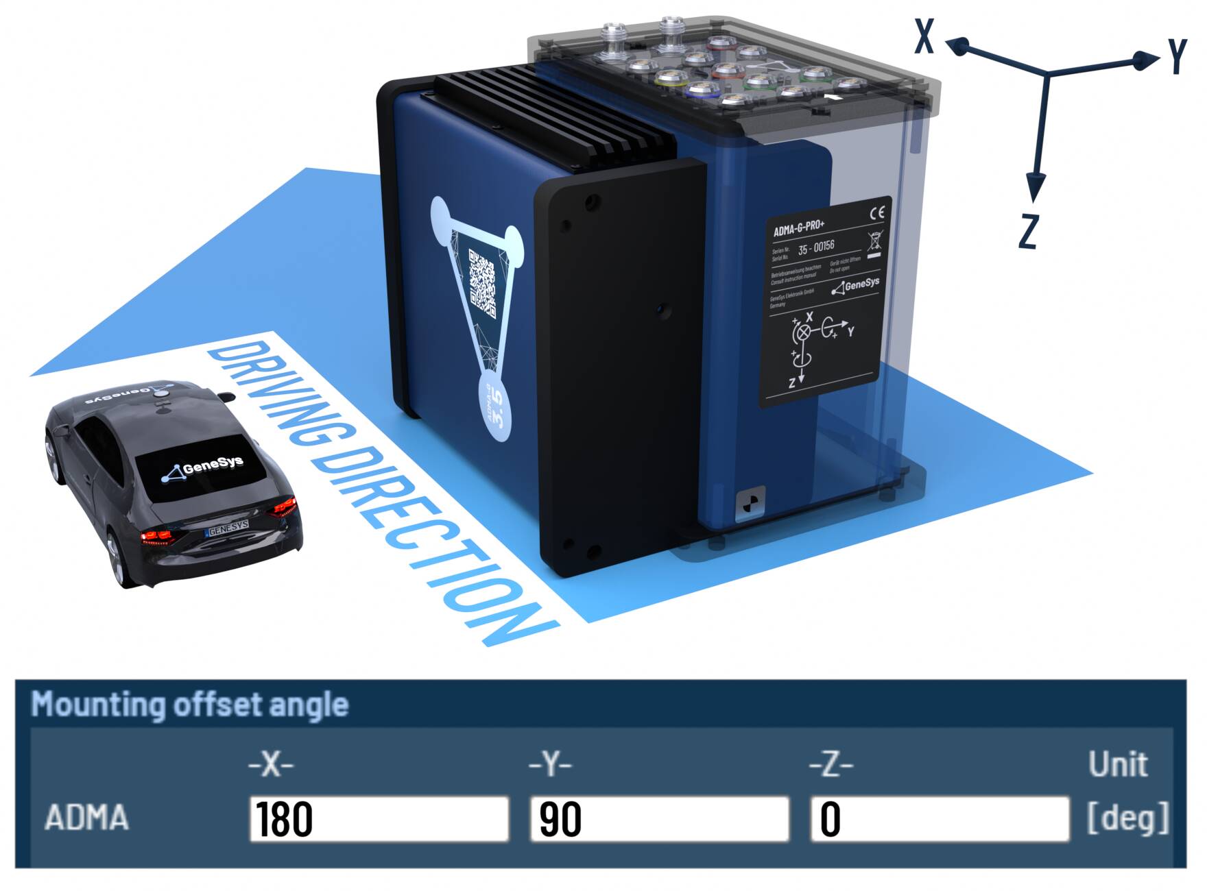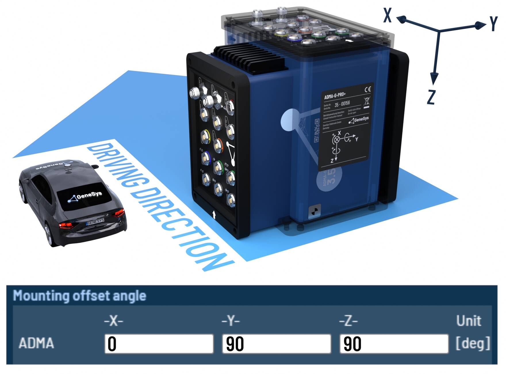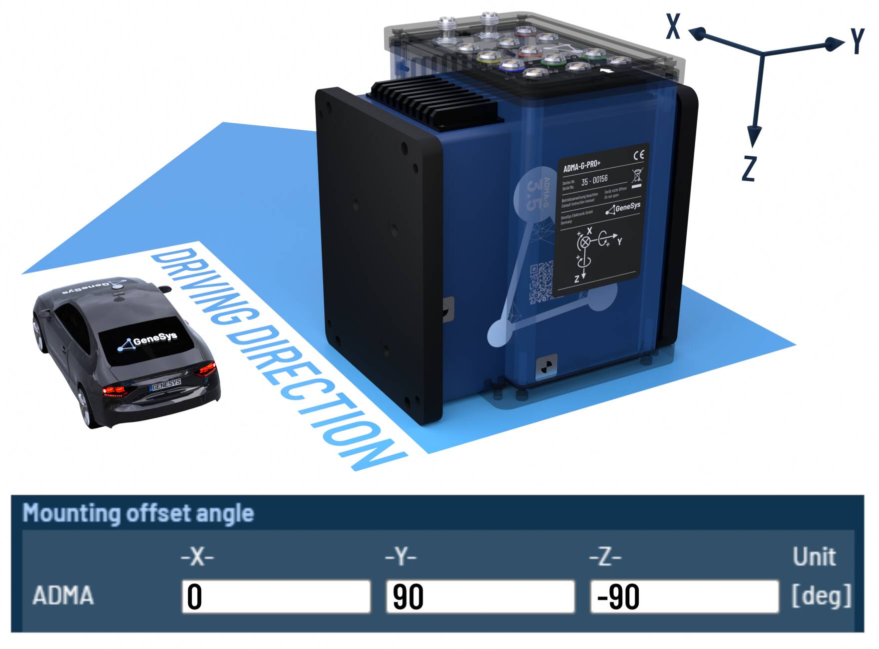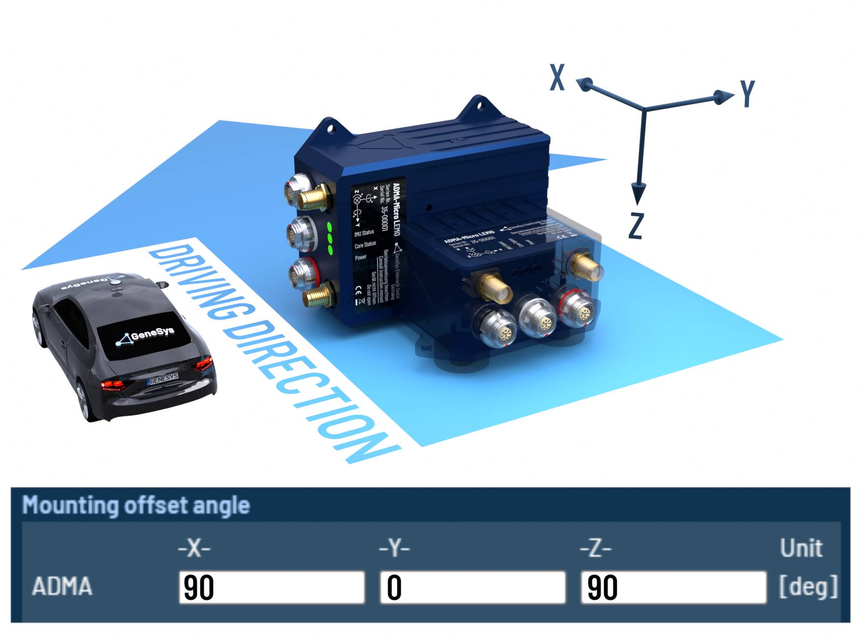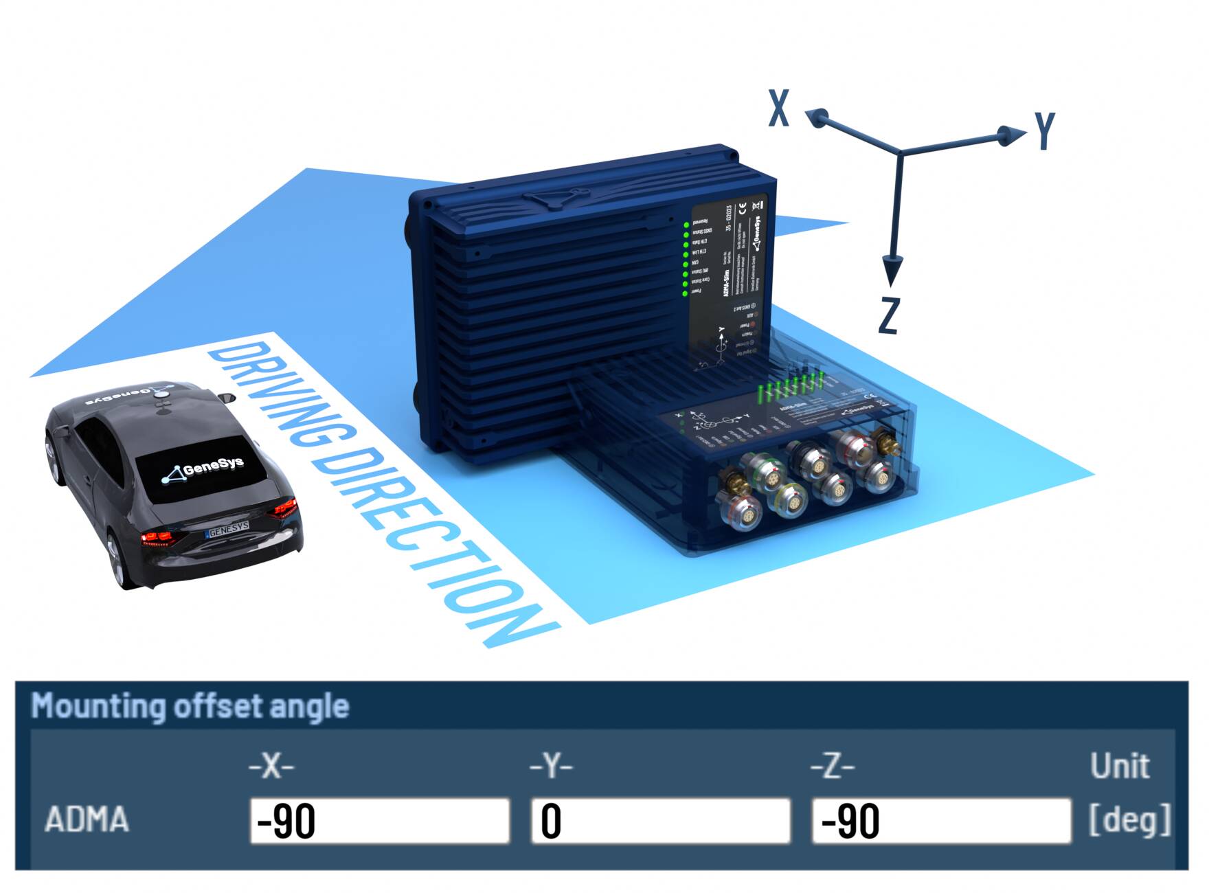 When the ADMA rotated orthogonally around multiple axes, please configure the offset angles according to the following tables.