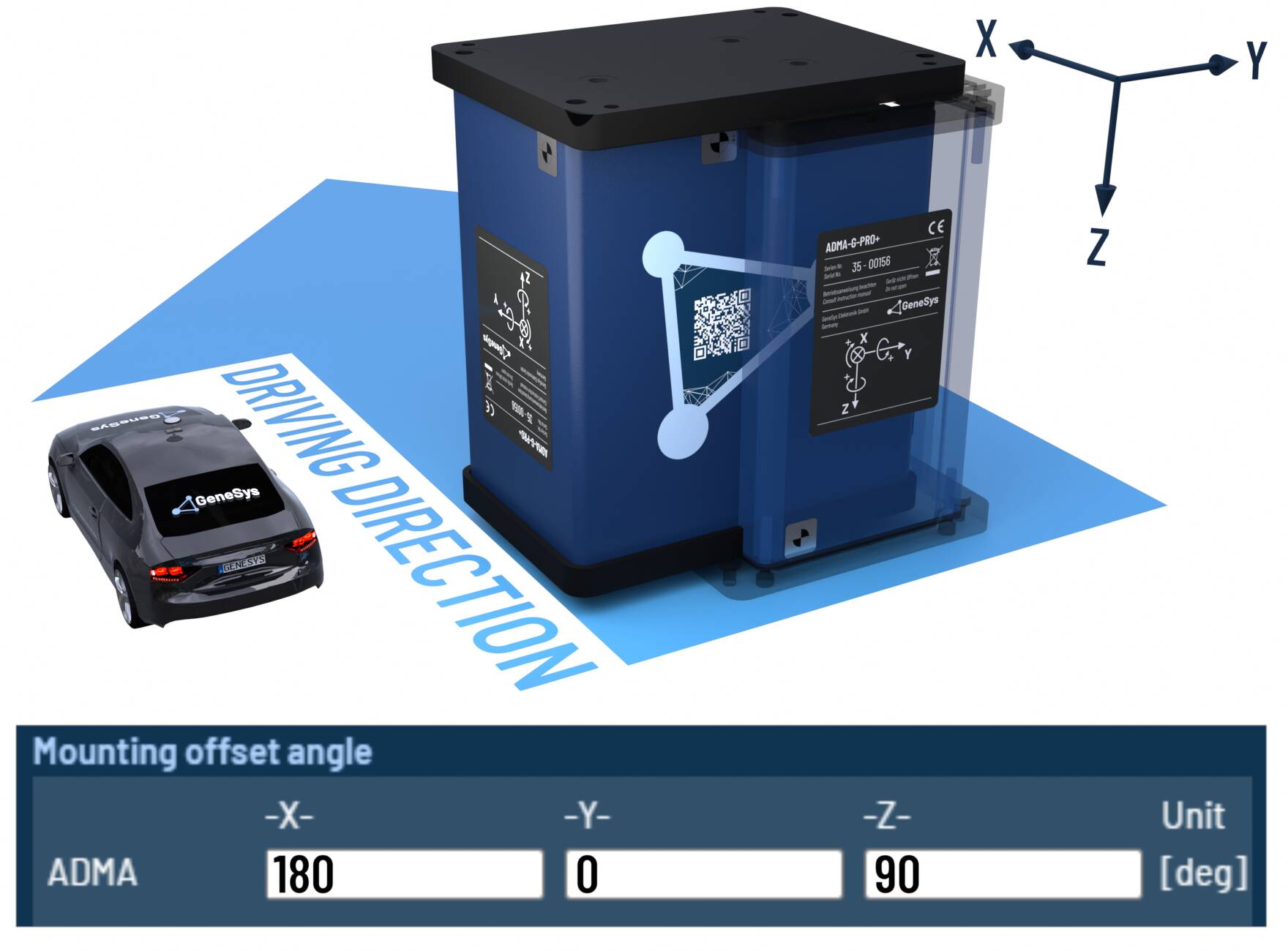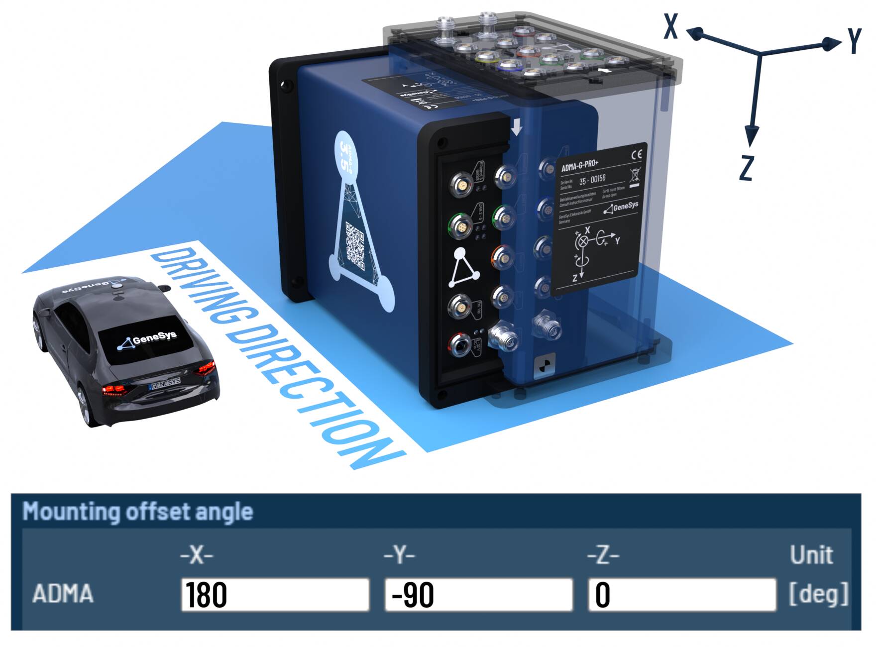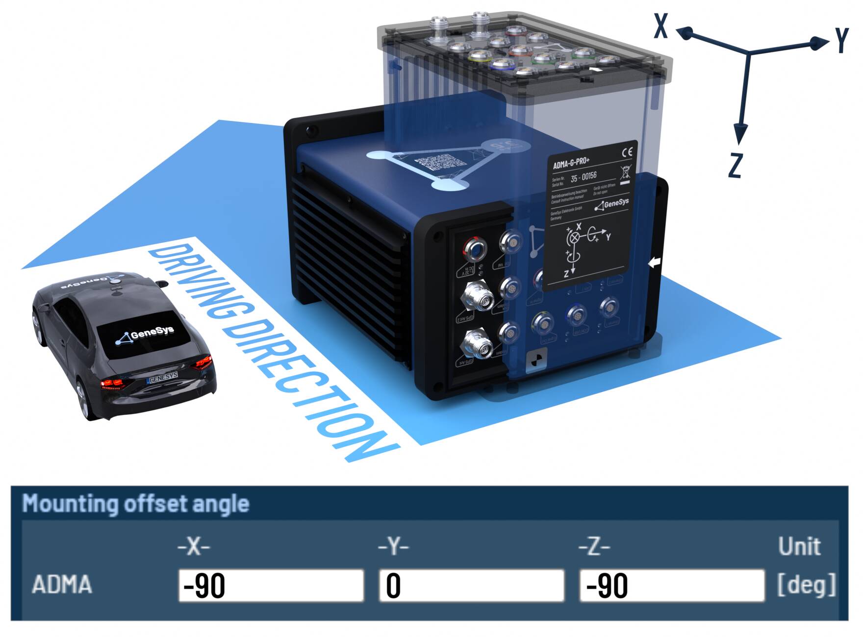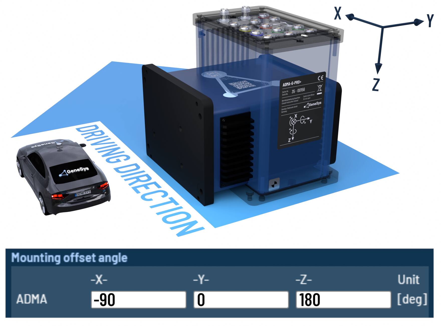 When the ADMA rotated orthogonally around multiple axes, please configure the offset angles according to the following tables.